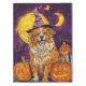 Admire el espíritu de Halloween con este diseño encantador que presenta un perro lindo en un gorra de brujas rodeado de calabazas talladas. Perfecto para añadir un toque de encanto espeluznante a sus celebraciones festivas.