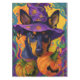 Admire el espíritu de Halloween con este diseño encantador que presenta un perro lindo en un gorra de brujas rodeado de calabazas talladas. Perfecto para añadir un toque de encanto espeluznante a sus celebraciones festivas.