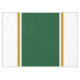 Este diseño colorido y deportivo presenta una banda central vertical verde de campo extra amplia realzada con rayas de carreras marrón doradas flotantes contra un fondo blanco brillante y crujiente.