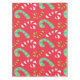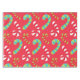 Fundido y colorido Navidad, el mantel de vacaciones tiene un fondo rojo brillante con muchos dulces a rayas de color verde y rojo, azul y verde, ¡y rojo y blanco y clásico!