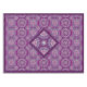 Dibujo de una vidriera de una antigua catedral europea: una ventana rosa, con toques de una gran variedad de colores, incluidos los tonos rosa y rojo cardenal, sobre un fondo rojo cardinal. Entrada de diamantes de imitación blancos (dibujado). Este motivo también está disponible en azul profundo en mis colecciones "Blue rosace". (sin IA)