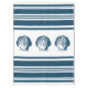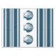 Diseño náutico con conchas azules y decoración de rayas sobre fondo blanco