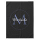 Monograma moderno de círculo azul minimalista con nombre inicial azul y blanco sobre negro. Nombre personalizado personalizable con un serif inicial en un color negro.