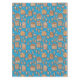 Patrón vectorial dibujado a mano con varias casas de jengibre, abetos, copos de nieve y galletas en forma de luna creciente en azul con caída de nieve