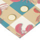 This vibrant and playful repeating pattern features a charming seaside picnic theme. Alternating checkerboard tiles in tan, teal, and ivory serve as a lively backdrop for an array of seafood elements. Boldly illustrated lobsters in red and pink take center stage, accompanied by orange crabs, teal shrimp, and slices of fresh lemon. The pattern has a whimsical, hand-drawn quality with subtle shadows and textures that give each creature a cut-out collage feel. Perfect for coastal kitchen textiles, summer tableware, restaurant branding, or nautical-themed decor, this design captures the fun and flavor of a sunny day by the sea.