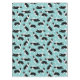 Los frisos de borde blanco y negro se sientan, permanecen y vuelan sobre un fondo azul con huellas de aletas, un divertido patrón con temática de perro.