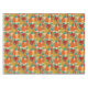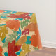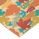 Hojas de color rojo, naranja, amarillo, verde y verde azulado coloridas en otoño sobre un fondo beige claro.