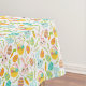 Adorables conejitos azules y rosados rodeados de zanahorias, vegetación, huevos de Pascua en verde, azul, morado y dorado, y cestas llenas de golosinas.