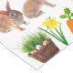 Esta mantelería de Pascua presenta un diseño adorable de conejo de vacaciones y jardín de tulipanes. También hay una canasta de Pascua con huevos coloridos. Utilice esta mantelería durante toda la temporada de primavera y especialmente el día de Pascua.