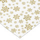 Esta tela de mesa festiva festiva presenta un patrón de bonito de imágenes doradas de copos de nieve de diferentes tamaños en un fondo blanco de nieve. Elegante y festivo para cualquier ocasión de invierno, sobre todo para entretenerse durante la temporada de vacaciones!