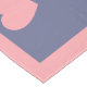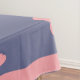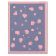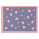 Corazones rosados sobre un mantel azul con un borde rosa.