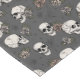 Dibujado a mano con tinta negra, este elegante mantel de Halloween presenta un hermoso patrón de cráneos, rosas y telarañas en tonos crema y rubor, todo con un elegante fondo gris oscuro.