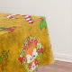 Un mantel de Navidades festivos, perfecto para los fiestas de Navidades infantiles, con un adorable cachorro de zorro sentado dentro de una corona de Navidades, rodeado de árboles de Navidad, copos de nieve, bastones y dulces.