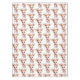 A tablecloth with an illustration of an adorable baby deer. Big eyes big ears with a large head and little brown antlers. Wearing a big red bow.