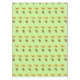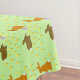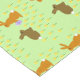 Este impresionante mantel presenta un par de lindos conejitos de Pascua rodeados de flores de daffodil amarillas. Los conejos son marrones con orejas grandes, ojos negros y colas blanquecinas. Uno de los conejillos sostiene un huevo de Pascua con un arco violeta de bonito y se acerca para ofrecerlo al otro conejito. Los folletos son amarillos y tienen un centro naranja luminoso.
