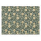 Dark green wallpaper pattern featuring repeating stylized yellow flowers interspersed with sage green leaves and swirling vines.