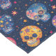 Día de los muertos se celebra con cráneos pintados en colores llamativos para respetar a la familia y amigos perdidos. Este diseño utiliza colores primarios en los cráneos y el cielo de la noche marina está lleno de estrellas coloridas.