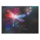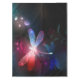 Flor, vuelo, libélula roja, con alas transparentes y detalladas sobre fondo oscuro, nocturno y luminoso con plantas tropicales y luciérnagas. Lluvia roja.