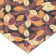 Un simple ilustracion de hojas en castaño de cacao, naranja y amarillo pálido contra un fondo negro.