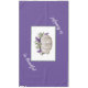 Bonito mantel de mesa con temática morada con calabaza blanca y flores moradas y blancas que decoran un área cuadrada blanca media. Gracias por el texto blanco, se puede personalizar para leer lo que se quiere.