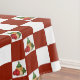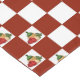 Los tomates rojos maduros, la albahaca verde frondosa, un bulbo grande del ajo y una botella tradicional de Chianti toda se incluyen en todavía Italiano-inspirada la vida en este mantel rojo y blanco del modelo del tablero de damas.