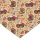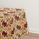 Pavos, bellotas, nueces y hojas de colores vivos se combinan para hacer un espléndido mantel para el día de Acción de Gracias y su decoración de otoño.