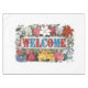 Ilustracion vintage con la palabra BIENVENIDA rodeado de una variedad de flores de jardín. Creado originalmente por Currier & ives en 1873.