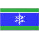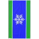Este festivo diseño de temporada presenta un copo de nieve nórdico blanco centrado en franjas de borde azul, blanco y kelly verde.