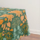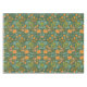 Seamless floral pattern on a dark green background featuring stylized orange, yellow, and teal flowers, leaves, and abstract shapes.