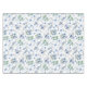 Flores azules y hojas verdes sobre fondo blanco patrón fresco y elegante