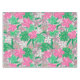 La mantelería de flores rosadas y blancas tropicales con hojas de palmera captura la esencia del paraíso tropical con sus vibrantes flores rosadas y blancas y exuberantes hojas de palmera. El diseño emana un ambiente fresco y exótico, perfecto para agregar un toque de felicidad tropical a cualquier espacio o fiesta.