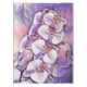 Pintura de una bonita flor de orquídea rosa blanca y violeta sobre un hermoso fondo color agua rosa y morado.