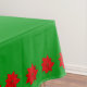 Flores de poinsettia sobre el mantel verde.