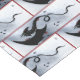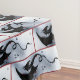 Dragón tribal negro con fondo gris azul con flores rojas pequeñas y borde rojo.