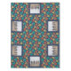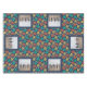 Este mantel está listo para ser personalizado con hasta seis de tus fotos. Tus fotos están acentuadas con ilustraciones de raquetas de padel y pelotas de tenis en oro, terracota, verde azulado, amarillo y crema ambientadas con un fondo azul marino.
