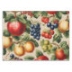 Este mantel pintado muestra una impresionante selección de frutas y flores inspiradas en un lujoso jardín italiano. Uvas, limones, manzanas y delicadas flores rojas están bellamente entrelazadas con hojas verdes y ramas sinuosas en un estilo elegante, pintado a mano. Los ricos colores naturales y los detalles artísticos evocan el encanto de comer al aire libre bajo el sol mediterráneo. Perfecto tanto para reuniones informales como para ocasiones formales, aporta calidez y elegancia intemporal a cualquier mesa. Deje que este mantel transforme su comedor en una celebración de la belleza del jardín italiano.
