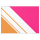 Este colorido y deportivo diseño presenta rayas de carreras en diagonal blanca contra naranjas brillantes y fondos rosas.