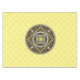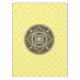 Esta mandala temática de Gemini representa una piedra de citrina rodeada por el símbolo del signo, la constelación y el símbolo alquímico del aire entre filigree y tejidos.