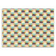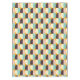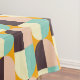 Geometric pattern with overlapping half-circles in teal, cream, brown, and peach on an orange background, creating a vibrant and retro feel.