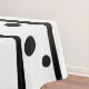 Tela de mesa blanca con motivos geométricos modernos con puntos de polka negro y bordes rayados. Formas circulares de moda durante los meses de verano o en cualquier época del año. Visita mi tienda para encontrar accesorios de vajilla a juego. Diseños originales © TamiraZDesigns. www.zazzle.com/tamirazdesigns