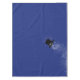 Manteles azules con estrellas y mágicos copos de nieve que traen el sombrero superior del hombre de nieve.