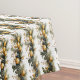 Hermosa mantelería de Navidad con una bonita guirnalda festiva con conos de pino, uvas moradas, vainas de semillas doradas y ramas de pino. Hermoso complemento para tu mesa navideña.