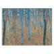Se basa en obras de arte clásicas de pintura natural de Gustav Klimt, Beech Grove 1, 1902. La obra representa un denso bosque de abedules altos y delgados, con troncos pálidos marcados por líneas oscuras y verticales. El follaje está pintado en tonos azules, verdes y amarillos, lo que añade una sensación de profundidad y vitalidad a la escena. El suelo del bosque está cubierto por una capa de hojas naranjas y marrones, lo que crea un sorprendente contraste con los troncos de árboles más ligeros. La composición general utiliza técnicas puntillistas e impresionistas, dando a la imagen un aspecto vivo y texturizado. La verticalidad de los árboles resalta la serenidad y la estructura rítmica del bosque.