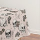 Dibujado a mano con tinta negra, este elegante mantel de Halloween presenta un hermoso patrón de cráneos, rosas y telarañas en tonos crema y rubor, todo con un elegante fondo rosa.