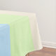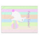 on a pastel striped background.