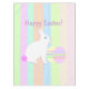 A simple, and pretty design with a cute Easter bunny sitting beside 2 pink, and yellow Easter eggs