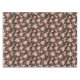 La decoración de este producto es un hermoso patrón floral de rosas rosadas y rojas rodeadas de follaje verde sobre fondo negro.
