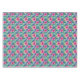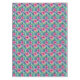 Flores de hibisco color agua en tonos rosa y violeta, hojas verdes sobre un fondo azul acuático.