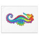 Arco de arcoiris, caballito de mar poligonal sobre fondo blanco. Tatuaje brillante.