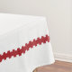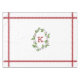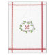 Este sencillo mantel blanco de vacaciones cuenta con un guarnecido rojo alrededor de los cuatro lados y una corona con bayas y un monograma inicial en el centro que se puede personalizar fácilmente antes de realizar el pedido.